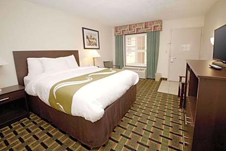 The Quality Inn hotel in Jacksonville, FL is near Agyle Convention Center and Orange Park Mall. This Jacksonville, Florida hotel is also close to St. John’s River and Orange Park Medical Center. All guest rooms have cable TV, down pillows, a coffee maker, refrigerator, microwave, hairdryer, alarm clock, pillow-top mattress and ironing facilities. Some rooms feature a desk and sofa sleeper. Guests at the Quality Inn hotel can enjoy relaxing in the seasonal outdoor pool or grabbing a drink at the on-site barista coffee bar. Business travelers will appreciate access to copy and fax services. Other amenities include: Free continental breakfast; Free wireless high-speed Internet access; Free coffee This is a pet-friendly hotel, where four-legged friends are allowed to stay for a small fee.