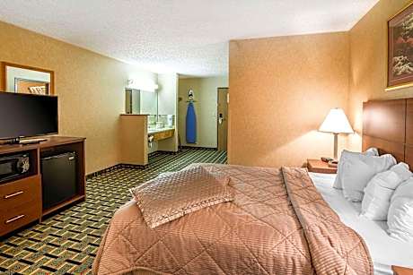 The Quality Inn Raton, NM hotel in Raton, New Mexico is located minutes from the Santa Fe Trail Scenic Byway, Shuler Theater, Sugarite Canyon State Park, the NRA Whittington Center, Capulin Volcano National Monument and Philmont Scout Ranch. This hotel is the place to stay for those who enjoy the outdoors. The fishing is terrific at Lake Mayola, located within Sugarite Canyon State Park. The Vermijo Ranch and the Pittsburg & Midway Coal Mine are an easy drive away. A variety of restaurants are nearby, including McDonald's located right across the street from the hotel. A free continental breakfast and free weekday newspaper are provided to help guests get started with their day. In addition, an indoor heated pool and hot tub are available for guest enjoyment. Business travelers will appreciate the free high-speed Internet access, free local calls and access to a fax machine. All rooms of the hotel include irons, ironing boards, coffee makers, alarm clocks, cable television with HBO and data port telephones. Suites with refrigerators, microwaves, king beds, couches and two televisions are available. A laundry facility is located on the premises for guest convenience. Nonsmoking rooms can be requested. Competitive rates are available for groups and business travelers.