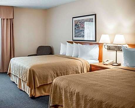 Located in the heart of Wisconsin's Northwoods, the Quality Inn Rhinelander hotel is less than one mile from the Rhinelander-Oneida County Airport. This Rhinelander, WI hotel is minutes from attractions like Nicolet Area Technical College, Rhinelander Logging Museum Complex, Mole Lake Casino and the Camp Five Museum, home of the Lumberjack Steam Train. The surrounding area offers a variety of outdoor recreational activities like hiking, biking, skiing, fishing and gaming. Several lakes and golf courses are in the vicinity for you to enjoy. A number of entertainment venues, shopping centers, restaurants and cocktail lounges are nearby; some are within walking distance to the hotel. This Rhinelander, WI hotel offers features and amenities like free hot, fresh and healthy breakfast with waffles and eggs, free wireless high-speed Internet access, free daily newspaper, free local calls and an exercise room. Guests can enjoy our indoor heated pool, indoor hot tub and sauna during their visit. Business travelers can appreciate conveniences afforded in our business center like the public computer with Internet access. Our on-site banquet and meeting facilities can accommodate up to 200 people for most business or social functions. All of our guest rooms are nonsmoking and come equipped with coffee makers, curved shower rods, hair dryers, irons, ironing boards and cable television. Ask about our rooms that have spacious work desks, hot tubs, microwaves, refrigerators and sofa sleepers. Connecting rooms can be requested. As an added convenience to our guests, we are a pet-friendly hotel; fees apply. Guest laundry facilities are available for added convenience.