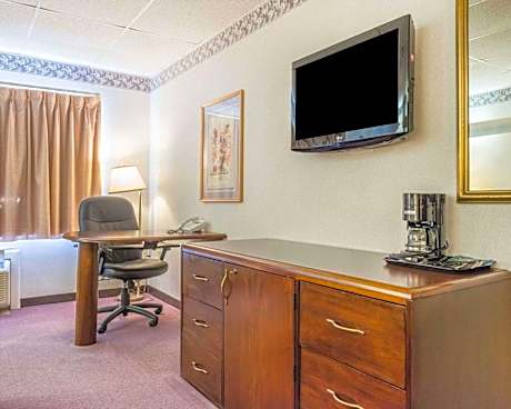 The Quality Inn Royle is located just one mile from the Allegheny River, where families can go fishing, water skiing, boating and swimming. This Kittanning, PA hotel is minutes from the Lernerville Speedway, Indiana University of Pennsylvania, the Fort Armstrong Folk Festival (held in August) and Crooked Creek State Park. Visitors will enjoy shopping at the nearby Franklin Village Mall, Pittsburgh Mills mall and the Hilltop Plaza shopping center. The hotel is also close to several golf courses and movie theaters. A variety of restaurants and cocktail lounges are located in the surrounding area. Be sure to visit the Guests of this Kittanning, PA hotel will enjoy amenities like free wireless high-speed Internet access, free extended continental breakfast, the Olympic-size seasonal outdoor pool, 24-hour coffee and tea, free local calls, free USA Today and local newspapers and an on-site restaurant and lounge, Theresa's Royle Allegheny, for lunch and dinner. The Quality Inn Royle is one of the only hotels in Kittanning, PA to boast having an on-site restaurant and lounge, and hot tub suites. Business travelers will appreciate conveniences like a business center and access to fax services. The meeting room is available to accommodate most events and business functions. In addition to standard amenities, all rooms come equipped with microwaves and refrigerators. The Quality Inn Royle is a nonsmoking, pet-friendly establishment.`
