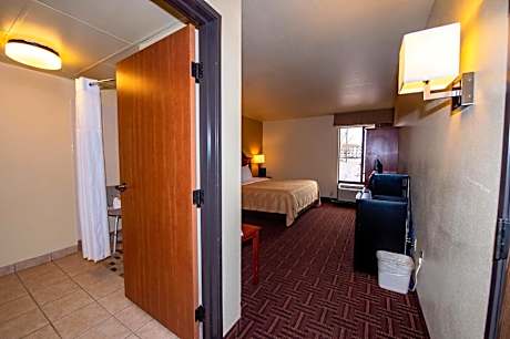Nestled at the base of the Rocky Mountains, the Comfort Inn South in Colorado Springs is in a great location just off Interstate 25 within walking distance of the World Arena. Seven Falls and Pikes Peak are nearby and Colorado Springs Airport is just 8 miles from this Colorado Springs, CO hotel. Your Morning Breakfast is full of options, making breakfast at the Comfort Inn South the perfect way to start your day. Guests at this Colorado Springs, CO hotel are invited to take advantage of the fitness center, indoor heated pool and hot tub. Business travelers will appreciate executive suites, the convenience of an on-site business center, access to copy and fax services, large work desks and voice mail. A meeting room is available that can accommodate up to 8 people for most small functions. All spacious guest rooms feature microwaves, refrigerators, coffee makers, hair dryers, irons, ironing boards and cable TV with Showtime.