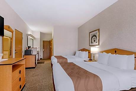 Quality Inn & Suites Denver Airport - Gateway Park is 11 mi from Denver International Airport and offers a 24-hour shuttle to the airport. This hotel is also convenient to the Rocky Mountains for nature enthusiasts in the mood for a short drive. Guests of the hotel are invited to relax in the indoor heated pool and hot tub, and enjoy a stress-relieving work out in the 24-hour fitness center at Quality Inn & Suites Denver Airport - Gateway Park . A business center is featured. A free hot breakfast buffet is served daily. Stay and Fly packages are available. Other amenities include: Free airport transportation, free wireless high-speed Internet access and interior halls. All guest rooms offer cable television, a coffee maker, refrigerator, microwave, hair dryer, alarm clock, iron and ironing board. Some rooms feature kitchen facilities.