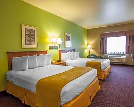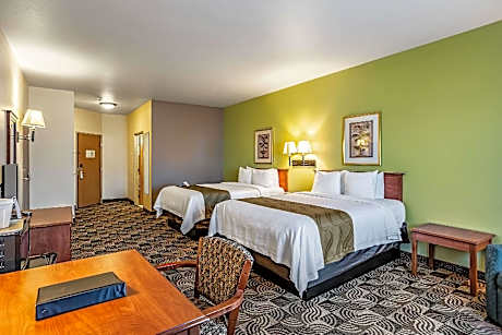The Quality Inn & Suites Hannibal West hotel is located just west of town on Highway 36. This hotel is minutes from area attractions like the Mark Twain Boyhood Home and Museum, Becky Thatcher House (the childhood home of Laura Hawkins), Molly Brown Birthplace and Museum, Mark Twain Cave, Mark Twain Lake and Sawyer's Creek, a family-friendly destination with entertainment, shopping and dining. Golfers will love being near area golf courses like Norwoods Golf Club. A movie theater and a variety of restaurants and cocktail lounges are located in the surrounding area. This pet-friendly hotel offers amenities and features like free Full breakfast, free coffee, indoor heated pool and hot tub, poolside bar and lounge, open 5:30PM to 9:30PM or later and an exercise room. Start your day with a free weekday newspaper and a free full breakfast served each morning. Our extended breakfast menu from Executive Chef Sarah Bunton, features 2 syles of scrambled eggs, sausage, bacon, fresh waffles, biscuts and gravy, fresh fruit, assorted cereals, and more. Guests will also enjoy our tropical indoor recreation area with Game room. Ask about our happy hours specials. This hotel has an incredible meeting and banquet facility with more than 4,800 square feet of space. The various rooms can accommodate events and occasions of all sizes. Business travelers will appreciate conveniences like free wireless and high-speed Internet access, voice mail in every room and access to copy services. All guest rooms have coffee makers, microwaves, refrigerators, hair dryers, irons, ironing boards and spacious desks. In addition to standard amenities, some rooms come equipped with whirlpool bathtubs. Nonsmoking and handicap rooms are available.