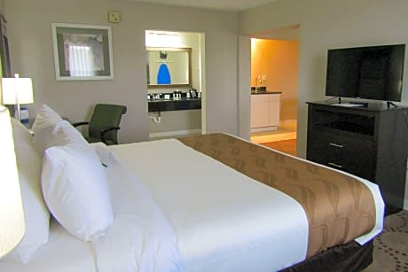 Quality Inn & Suites Kissimmee by the Lake is conveniently located on W. Irlo Bronson Mem Hwy, right next to Mile Marker 4. Featuring a year-round outdoor pool, as well as free scheduled transportation Disney World. Disney's Hollywood Studios is 4.3 km away. Each room is fitted with a 40-inch flat-screen TV with cable channels. Certain units include a seating area to relax in after a busy day. Beds at this Quality Inn & Suites feature pillow top mattresses. Views of the lake, pool or garden are featured in certain rooms. Rooms have a private bathroom. For your comfort, the bathroom features free toiletries, a hairdryer, and curved shower rods. In addition to free Wi-Fi, you will find free shuttle service to Lake Buena Vista Factory Stores. Free local calls and a wake-up service is also offered. Disney's Boardwalk 5 km from Quality Inn & Suites Disney, while Epcot is 6 km from the property. The nearest airport is Orlando International Airport, 30 km from the property. Minimum age to check-in is 18. We offer Housekeeping service after the 3rd night. Quality Inn & Suites accepts mail and packages sent on behalf of guests, for an additional cost. A major credit/debit card is required for all bookings. We reserve the right to authorize your card for a minimum of 1-night room & tax. Should for any reason the card you provided to reserve your room declines to authorize for 1 night's stay, we reserve the right to cancel the reservation once the cancellation deadline has passed. A credit/debit card is required for all reservations, for a security deposit of 100.00 USD will be collected at check-in. It can take up to 30 days for the authorization to release, depending on your bank institute. Discount Tickets are available in the lobby. Breakfast Hours as of Sept. 8, 2025 are as follows: Monday - Friday 6am-9am. Saturday - Sunday 7am-10am. Unfortunately, our outdoor pool is NO LONGER HEATED.