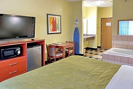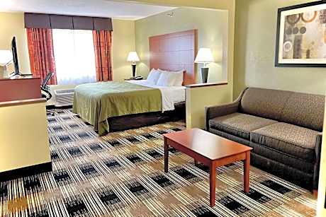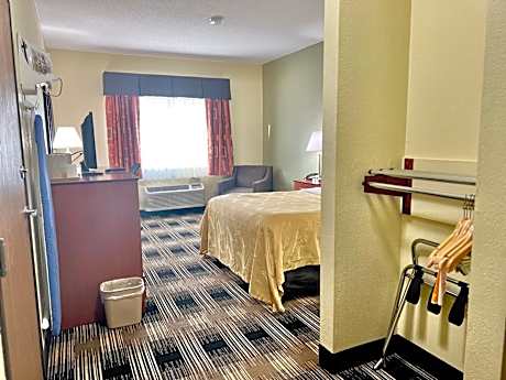 Located 6 minutes’ drive from Noah's Ark Water Park, this Wisconsin Dells hotel is located in the city center and features an indoor pool. Free Wi-Fi access is available. A daily continental breakfast with waffles, fresh fruit, and more is served at this property. 24-hour front desk are featured at Wisconsin Dells Quality Inn & Suites Wisconsin Dells Downtown - Waterparks Area by Choice Hotels Wisconsin Dells by Choice Hotels Wisconsin Dells by Choice Hotels - Wisconsin Dells. The property offers free parking. Our welcoming guest rooms feature a premium mattress and linens. We’re proud to be an accessible hotel, so everyone can enjoy our friendly service. Late check out is available. Enjoy easy access to entertainment in Wisconsin Dells Explore world-class waterparks, beautiful scenery and a distinctly local downtown shopping district when you stay at Quality Inn & Suites Wisconsin Dells Downtown - Waterparks Area® in Wisconsin Dells. We’re located off Interstate 90/94, near the Original Wisconsin Ducks tours that tackle the trails and splash into the Wisconsin River and Lake Delton. Trappers Turn Golf Club and the sandstone bluffs of Rocky Arbor State Park are located right behind our hotel. Take the plunge at Noah's Ark Water Park and Mt. Olympus Water and Theme Park, try 72 holes of mini golf, the petting zoo and the Skyscraper ride at Timber Falls Adventure Park or shop for Wisconsin cheese, gourmet popcorn and delicious fudge in dynamic downtown Wisconsin Dells. The Wisconsin Opry, Ho-Chunk Casino, Lost Canyon Tours and Baraboo-Wisconsin Dells Airport are located nearby. The hotel offers many room types and amenities such as, microwave, TV, refrigerator, coffee machine and free Wi-Fi. You will also find lots of local shops and restaurants in the area, including many in downtown Wisconsin Dells, located walking distance away. Hotel also includes: * Free Continental Hot Breakfast * Heated Indoor Pool * Elevator * Handicap accessible rooms * ATM Available in Lobby