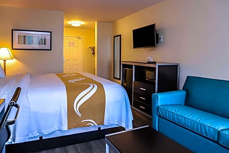 Located just off Ventura Freeway in Camarillo, Quality Inn & Suites Camarillo is located centrally between Los Angeles and Santa Barbara, California. An outdoor heated pool and hot tub are featured at this hotel. Rooms here come equipped with a cable TV with pay-per-view channels, a refrigerator, and a private bathroom with a bath or shower. Select rooms include a microwave and a seating area with a sofa. Guests can start their day off with a free continental breakfast, served daily. Later in the day, guests can take advantage of a complimentary afternoon wine-tasting happy hour. Meeting facilities for up to 75 people can also be found on site. Camarillo Quality Inn & Suites is 15 minutes’ drive from Point Mugu State Park and 45 minutes’ drive from Universal Studios Hollywood. Six Flags Magic Mountain is 46 mi away. Oxnard Airport and Camarillo Airport are both reachable within 15 minutes’ drive. Los Angeles International Airport is 57 mi from the hotel.