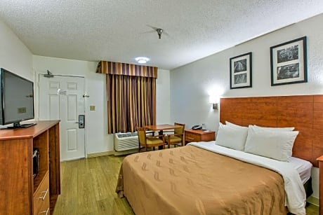 The Quality Inn Tallahassee has an outdoor pool and provides a hot breakfast and free satellite TV to guests. It is easily reached from Interstate 10 in Florida’s capital city. All rooms at the Quality Inn Tallahassee have free satellite TV, ironing facilities and a coffee maker. Some have a microwave and refrigerator, and rooms with a work desk and seating areas are available. Along with the seasonal outdoor pool, guests will find breakfast offered daily at the hotel. Wi-Fi and wired Internet access is free throughout the hotel. The Tallahassee Mall is 2 miles from the hotel, and the campus of Florida State University is 5 miles away. The Quality Inn is 7 miles from the Hilaman Park Municipal Golf Course.