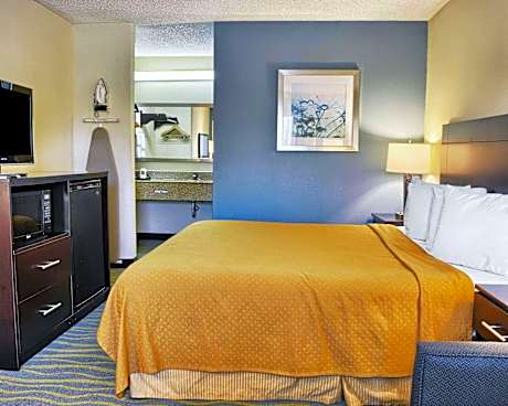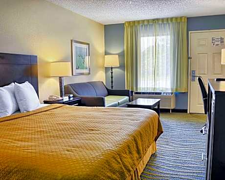 Perfectly located with easy access to Interstate 95, the Quality Inn hotel is minutes from historic downtown Fredericksburg, Fort AP Hill military training facility and the University of Mary Washington. This hotel is 15 miles from Lake Anna State Park, where visitors will enjoy boating and fishing. Paramount's Kings Dominion amusement park is 20 miles away. Visitors can enjoy shopping at the nearby Massaponax Factory Outlet Center or touring Civil War parks in the area, including the Fredericksburg & Spotsylvania National Military Park and Stonewall Jackson Shrine. A variety of restaurants are located nearby. Hotel features and amenities include free continental breakfast, free high-speed Internet access in all rooms, free weekday newspaper, free local calls, free coffee, a seasonal outdoor pool. The hotel welcomes pets less than 25 pounds with a small nightly fee. Business travelers can appreciate conveniences like computer hookups and access to fax and copy services. The meeting room accommodates up to 10 people. All guest rooms at this hotel are equipped with coffee makers, hair dryers, microwaves, refrigerators, irons and ironing boards. Some rooms also include spacious work desks and sofa sleepers.