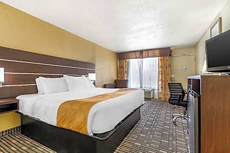 Quality Inn Tucumcari features a seasonal outdoor swimming pool, fitness center, a garden and shared lounge in Tucumcari. This 2-star inn offers free WiFi. The inn has family rooms. All guest rooms at the inn are equipped with a seating area and a TV with satellite channels. The rooms will provide guests with a fridge. Guests at Quality Inn Tucumcari can enjoy a buffet or an American breakfast. The accommodation has a sun terrace. Free private parking and a business center are available, as well as a 24-hour front desk. Clovis Municipal Airport is 86 miles away.