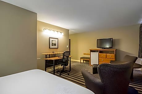 This hotel is a 5-minute drive from the West Edmonton Mall. The hotel offers free WiFi, free on-site parking and a 24-hour front desk. Daily breakfast is served each morning. Quality Inn West Edmonton features a gym and laundry facilities. Guest rooms at the West Edmonton Quality Inn are equipped with cable TV and coffee makers. Work desks and ironing facilities are also included. Downtown Edmonton is a 10-minute drive from the Quality Inn. The Galaxyland Amusement Park is 1.9 mi from this hotel.