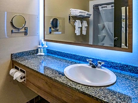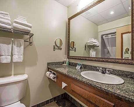 This hotel is just off Highway 55/20, within a 5-minute drive of downtown Drummondville. The hotel offers a kitchenette, free Wi-Fi and air conditioning in every nonsmoking suite. Hotel Quality Suites Drummondville features an indoor swimming pool and a gym. A business center with copy and fax service is available. Guests can start the day with a continental breakfast at the Drummondville Quality Suites. Bar service is also offered. Club de Golf Le Drummond is 4.7 miles from the Quality Suites Hotel. Activities such as hiking, kayaking and biking are available nearby.