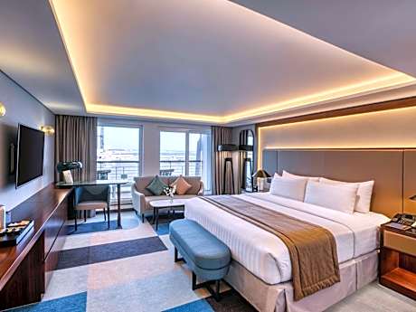 Providing free toiletries and bathrobes, this quadruple room includes a private bathroom with a bath, a shower and a bidet. The air-conditioned quadruple room provides a flat-screen TV with satellite channels, a tea and coffee maker, a safe deposit box, a sofa as well as city views. The unit offers 1 bed.