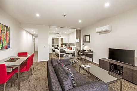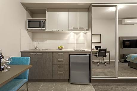 Offering luxury, 4.5 star accommodations, Quest Liverpool is located in Sydney's South West. Guests have access to Free High speed WiFi with speeds upto 200+Mbps, meeting facilities and both a fitness and business center. Quest Liverpool Apartments is 3 minutes' walk from Liverpool Train Station and 7 minutes' walk from Westfield Liverpool. Whitlam Leisure Center is 14 minutes' walk away. Each stylish apartment is equipped with a fully equipped kitchen, a laundry, separate living/dining area and a Smart TV with streaming services (Netflix, etc.). Limited, secure underground parking is available, including accessible and 3-EV charging stations. The height restriction of the vehicles is 7.5 feet. You can enjoy a meal at a range of local restaurants which have charge-back services. License Number(s): STRA Exempt