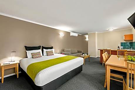 Located adjacent to Hobart’s beautiful Sullivans Cove, in the heart of the entertainment and tourism hub, Hobart Waterfront Apartments offers hotel rooms, studios and family apartments. All accommodations types come with air conditioning, Movie Vue, tea and coffee making facilities, mini-bar fridge, separate bathroom with standard bath with spa bath jets. The studios and family apartments also have well equipped kitchenettes. Just yards away, you will find cafes, restaurants, entertainment, shops and Salamanca Place with its famous Saturday markets. Hobart Waterfront Apartments is also very close to the CBD (Central Business District), Tasmanian Museum & Art Gallery, MONA and Bruny Island ferry terminals, as well as the Tasmanian Maritime Museum.