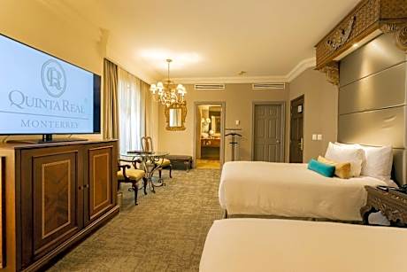 Quinta Real Monterrey is located opposite Plaza Fiesta San Agustin Shopping Center in San Pedro Garza Garcia, Monterrey's financial district. It offers an indoor pool, a gym and a courtyard with gardens and fountains. The Quinta Real Monterrey combines colonial-style architecture and modern facilities. Decorated with neutral tones and antique-style furniture, each stylish suite has a seating area and a private bathroom. Some suites feature balconies with views of the courtyard, mountains or city. The hotel's Los Balcones Restaurant serves Mexican and international food, while Los Murales Bar offers live music. You can also find restaurants and cafés in the nearby shopping center. Quinta Real Monterrey is just a 5-minute drive from Monterrey's historic center and a 15-minute drive from the Cintermex Expo Trade Fair. Mariano Escobedo Airport is around a 35-minute drive away.