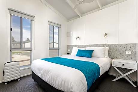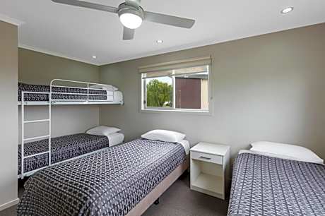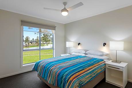 RACV Cobram Resort is packed full of family fun activities including indoor/outdoor swimming pools, a tennis court and an inflatable jumping pillow.Free WiFi is available in public areas. Cobram Resort is a 5-minute drive from the heart of Cobram and a 3-minute drive from the Murray River. Cobram Barooga Golf Course is an 8-minute drive away. All air-conditioned accommodations offers a dining and lounge area with a flat-screen TV and DVD player. It also has outdoor furniture. Some rooms have laundry facilities or a patio with lake views. Guests can relax in the hot tub or work out in the fitness center. There is a games room with billiards and table tennis. Also on offer is a children’s playground and bicycles for hire. Enjoy the outdoors and share a meal using the BBQ facilities, or grab a snack from the onsite café.