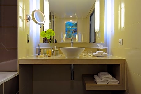 Experience an abundance of unparalleled facilities and features at Radisson Blu Hotel Abu Dhabi Yas Island.Maintain seamless communication using the complimentary Wi-Fi at hotel.Effortlessly arrange transportation to and from the airport using the hotel's airport transfer services. Discovering Abu Dhabi becomes even more accessible through the taxi, car hire and shuttle amenities provided at the hotel. For visitors traveling by automobile, complimentary parking is available.During your stay at this fantastic hotel, the attentive front desk personnel can provide you with a range of amenities such as concierge service, express check-in or check-out, luggage storage and safety deposit boxes.In search of city's top entertainment, seek assistance at the hotel's ticket service and tours for reservations.At the hotel, utilize the on-site dry cleaning service and laundry service to maintain your beloved travel attire fresh, allowing you to bring fewer clothes.Craving relaxation? Make the most of your stay at the Radisson Blu Hotel Abu Dhabi Yas Island with convenient amenities like 24-hour room service, room service and daily housekeeping at your disposal. Kindly note that smoking is prohibited in the hotel to ensure fresher air for all visitors. For visitors wishing to smoke, designated smoking zones can be found. At Radisson Blu Hotel Abu Dhabi Yas Island, every guestroom is provided with convenient amenities and fittings to ensure a comfortable stay. Enhance your experience at hotel with the knowledge that certain rooms are equipped with linen service and blackout curtains for your convenience.At Radisson Blu Hotel Abu Dhabi Yas Island, each visit offers an array of intriguing room configurations, featuring accommodations with separate living room and balcony or terrace, ensuring a distinct experience every time.Certain rooms boast in-room amusement features such as daily newspaper, television, in-room video streaming and cable TV, offering guests an enjoyable stay.In select rooms within the hotel, a coffee or tea maker, bottled water and mini bar is available to cater to your requirements when desired.It is worth noting that certain guest bathrooms feature a hair dryer, toiletries and bathrobes for your convenience. Be sure to stop by the elegant executive lounge where you can experience the lavish amenities and ambiance. Begin your day with a scrumptious on-site breakfast available each morning at Radisson Blu Hotel Abu Dhabi Yas Island.Begin your day feeling refreshed and invigorated as you enjoy a delightful cup of quality coffee available at the cafe situated within the hotel.At the hotel, an assortment of easily accessible and delicious meal choices are available to satisfy your appetite whenever it strikes. At Radisson Blu Hotel Abu Dhabi Yas Island, they are committed to catering to your unique requirements. They offer a variety of meal choices, encompassing halal alternatives for those with special dietary preferences. Enjoy an entertaining evening with your fellow travelers at the hotel's bar.During your stay at hotel, an array of engaging activities and amenities guarantees a delightful experience. During your stay, don't forget to allocate some moments to experience the readily available shoreline. Conclude your holiday perfectly with a visit to massage, hot tub, steam room, spa and sauna on your final days. Be sure to drop by the pool at hotel at least once during your stay. At Radisson Blu Hotel Abu Dhabi Yas Island, utmost care is taken to ensure guests' comfort. Relish your preferred beverage in your swimwear by the hotel's poolside bar.Discover the fitness amenities at hotel to maintain your health and strength during your getaway.