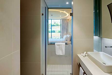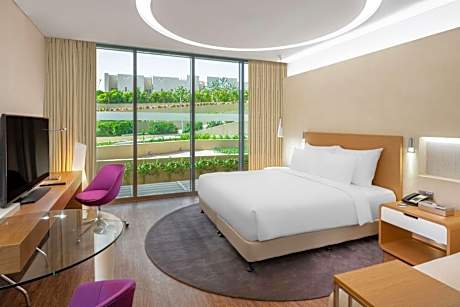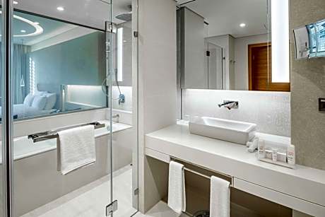 Radisson Blu Hotel & Residence, Riyadh Diplomatic Quarter offers top-notch services and amenities, ensuring guests experience utmost comfort.Visitors can take advantage of the accessible parking options directly at the hotel. Traveling with minimal luggage is achievable at Radisson Blu Hotel & Residence, Riyadh Diplomatic Quarter due to the hotel's laundromat ensuring your garments stay fresh.The hotel maintains a completely smoke-free zone, providing a breathable atmosphere. Each accommodation at Radisson Blu Hotel & Residence, Riyadh Diplomatic Quarter is thoughtfully created and adorned to provide visitors with a comfortable, home-like atmosphere.In select rooms of the hotel, guests can enjoy the advantage of having linen service available for their convenience. At Radisson Blu Hotel & Residence, Riyadh Diplomatic Quarter, the uniquely tailored rooms provide a configuration choice resembling a balcony or terrace.In select rooms, guests can enjoy a touch of amusement with the availability of television for their entertainment. Rest assured, in a few chosen rooms, you will find the convenience of a refrigerator and mini bar at your disposal.Radisson Blu Hotel & Residence, Riyadh Diplomatic Quarter offers a hair dryer, toiletries and bathrobes in the restrooms of specific accommodations. Immerse yourself in the executive lounge, where exceptional amenities and lavish surroundings await you. Embark on your holiday experience in the most ideal manner. Commence each morning of your visit with an on-site breakfast. Should you prefer not to venture out for a meal, the enticing culinary choices at hotel are always available for your satisfaction. Radisson Blu Hotel & Residence, Riyadh Diplomatic Quarter provides a superb assortment of leisure amenities for guests to enjoy.Each day at hotel, immerse yourself in the invigorating waters of the pool, perfect for a rejuvenating plunge or a series of revitalizing laps.