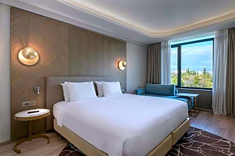 Facing Pedion Areos Park, Radisson Blu Park Hotel Athens is located just 1312 feet from the Archaeological Museum of Athens and a 5-minute walk from Victoria Metro Station. Its rooftop swimming pool operates on a seasonal basis and offers views over the Acropolis and Lycabettus Hill. A fitness center, a sauna and a hammam are available free of charge. The rooms at Radisson Blu Park Hotel Athens boast sophisticated urban design and come equipped with a work desk, a mini bar, a safe and a Plasma TV. The bathrooms include a hairdryer and free toiletries. Most units offer views to the park and some to the Acropolis. Guests can start their day with a buffet breakfast which also includes fresh omelets prepared on the spot upon request. A grab-and-run breakfast including coffee and tea, fresh fruits and energy bars, is also available between 05:00 and 06:30. Discover fusion creations in Athens at 10 Urban Roof located appropriately ten floors above the city. The 10 Urban Roof promises a brand new experience in the city’s restaurant bar scene. Discover the upbeat music and great vibes for a memorable experience In Athens. Indulge in pool lounging, craft cocktails, lunch and dining all with a panoramic view of Athens from above. Rooted in Mediterranean heritage, our menu elevates Greek ingredients with bold, exotic twists, creating a harmonious fusion of flavors. Match your meal with a refreshing cocktail and enjoy the magnificent views! Syntagma Square is 1.6 mi from Radisson Blu Park Hotel Athens, while the commercial district of Athens can be reached within a 15-minute walk. The New Acropolis Museum is at a distance of 1.9 mi. Eleftherios Venizelos Airport is 22 mi from the hotel. Private parking is possible on site at an extra charge.