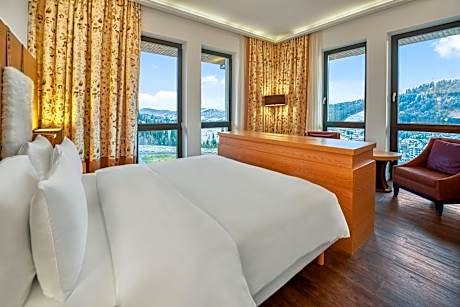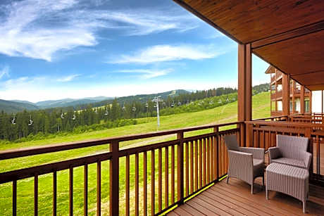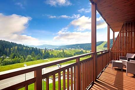 A spa center, an indoor pool, a sauna and a gym are offered at this 5-star hotel, set among the Carpathian Mountains in Bukovel Ski Resort. Free Wi-Fi is provided. The elegant and spacious, air-conditioned rooms are decorated in modern style and offer light, warm-colored interiors. Every room includes a flat-screen TV, a mini-bar and a private bathroom with bathrobes and a hairdryer. The balcony overlooks the picturesque Carpathian Mountains. Montblanc Restaurant serves fine Ukrainian and European cuisine, while B-Zone Restaurant features its grilled specialties. Low-calorie cocktails are featured at the Spa Bar, and light snacks and various drinks are offered at the Lounge Bar. Ski elevator №7 is located right by the hotel. After skiing guests can relax in the Turkish steam bath or unwind in the hot tub. Massage services, beauty salon and solarium are also available. Bukovel Bus Station is 0.9 mi from Radisson Blu Resort Bukovel. Yaremche Train Station is 21 mi away, and Ivano-Frankivsk International Airport is 62 mi from the hotel.