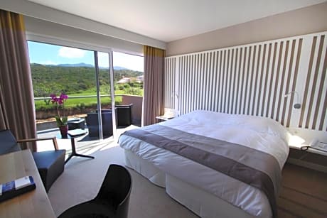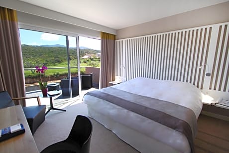 Just 328 feet from the magnificent Agosta Beach, the Radisson Blu Resort & Spa offers you the opportunity to experience total relaxation. Enjoy our year-round spa, featuring a hammam, sauna, and heated relaxation pool (access at an additional cost, reserved for adults over 16), for a moment of absolute well-being. For those looking to stay in shape, a gym is also available during the same hours as the spa. Relax on our sunny terraces or in our landscaped garden with its bowling alley, perfect spaces to enjoy the Mediterranean climate. To cool off, take a dip in our heated outdoor pool, free for all our guests. Enjoy a cocktail at the pool bar in a friendly and relaxed atmosphere. Our elegant, air-conditioned rooms feature king-size beds for optimal comfort and all feature a private balcony with garden or pool views. Free Wi-Fi is available throughout the property. Each morning, start the day with a generous continental buffet breakfast. The restaurant offers refined regional cuisine with breathtaking views of Ajaccio Bay and the Sanguinaires Islands, ideal for a serene lunch or dinner. In the evening, relax with an aperitif at the bar while enjoying a magical sunset. The Radisson Blu Resort & Spa enjoys a prime location, just 3.1 mi from Porticcio and its lively beaches, and 12 mi from Ajaccio city center. For your convenience, we offer laundry services, a business center, and car rental. We also have luggage storage and a courtesy room equipped with showers and changing rooms to make your stay even more enjoyable. Treat yourself to an unforgettable experience of relaxation and discovery at the Radisson Blu Resort & Spa, your ideal hotel for a memorable vacation!
