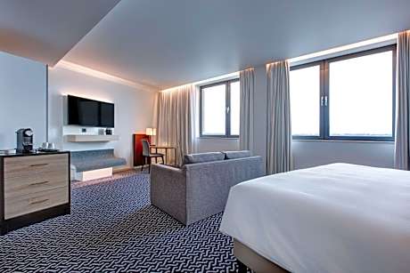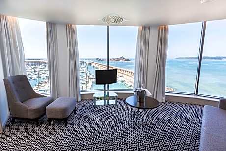 Each room at the Radisson Blu Waterfront Hotel, Jersey, is elegantly designed, offering both town and sea views. Spacious and well-appointed, these rooms provide a welcoming environment complete with modern conveniences like a flat-screen TV and a fridge. Guests can also enjoy 24-hour room service, adding an extra layer of comfort to their stay.