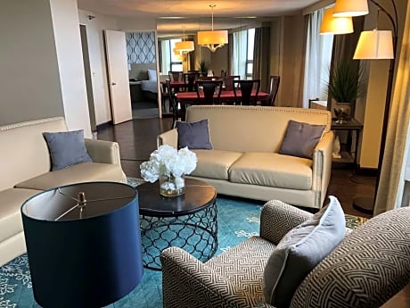 A local landmark, Radisson Hotel Duluth-Harborview is Minnesota’s longest operating Radisson, having opened in 1970. Our building is circular which makes for uniquely shaped guestrooms and beautiful views of the Hillside, City, Harbor and Lake Superior. All our 268 guestrooms have a microwave, mini-refrigerator and Keurig coffee maker. You will enjoy complimentary wi-fi, free parking, indoor pool, sauna and Business Center.. Our lobby welcomes you with a retro, 70's design just as it has welcomed numerous celebrities such as Elvis Presley, Bob Dylan, and Johnny Cash. Experience the best of downtown Duluth from our rotating restaurant located atop the 16th floor of our historic Radisson hotel. With fast-casual food, board games, and a full bar, Harbor 360 offers an accessible and affordable dining experience for everyone. Gather your family and friends, share a meal, and take in the breathtaking views of Duluth and the harbor as you rotate around our restaurant. Open to residents and tourists alike, Harbor 360 is the place to be for an unforgettable sightseeing experience. Join us for breakfast, lunch, and dinner every day of the week. Reservations are taken only for parties of eight people or more. We are 100% connected to the Skywalk, which connects you to DECC and Amsoil Arena in indoor comfort. Easy access to Canal Park, the Lake Walk and Aerial Elevator Bridge can be found using the Skywalk or a short outdoor walk.
