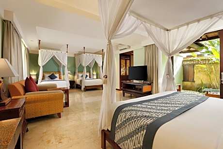 Rama Beach Resort & Villas offers top-notch services and amenities, ensuring guests experience utmost comfort.Share your photos and respond to emails at your convenience, thanks to the free Wi-Fi internet access offered by resort. Should you require transportation to or from the airport, resort is able to organize it prior to your arrival date. Taxi, car hire and shuttle offerings at the resort simplify arranging your excursions, explorations, and additional activities in Bali.Visitors can take advantage of complimentary parking directly at the resort.Reception services such as concierge service, express check-in or check-out, luggage storage and safety deposit boxes are available to accommodate your requirements.Securing top-notch tickets and snagging sought-after dining reservations become effortless, thanks to the resort's ticket service and tours.Traveling with minimal baggage is achievable at Rama Beach Resort & Villas, as the resort's dry cleaning service and laundry service ensures your garments stay fresh. Room amenities like room service and daily housekeeping contribute to making a perfect selection for your stay. The resort maintains a completely smoke-free zone, providing a breathable atmosphere. Smoking is limited to specified smoking zones.Each accommodation at Rama Beach Resort & Villas is thoughtfully created and adorned to provide visitors with a comfortable, home-like atmosphere.In certain rooms, the resort offers blackout curtains and air conditioning for guest convenience and satisfaction. At Rama Beach Resort & Villas, the uniquely tailored rooms provide a configuration choice resembling a balcony or terrace. In select rooms, guests at the resort can enjoy top-notch in-room entertainment with daily newspaper, television, in-room video streaming and cable TV available for their convenience.Rest assured, in a few chosen rooms, you will find the convenience of a refrigerator, a coffee or tea maker, bottled water, instant coffee, instant tea and mini bar at your disposal. Rama Beach Resort & Villas offers a hair dryer, toiletries and bathrobes in the restrooms of specific accommodations. Begin your holiday on a high note. At Rama Beach Resort & Villas, your mornings are greeted with a delightful, free breakfast.Experience the delight of a fresh morning by savoring excellent coffee at the cafe situated within resort. Should you prefer not to venture out for a meal, the enticing culinary choices at resort are always available for your satisfaction. Experience an unforgettable evening with your fellow travelers just a short distance away, at resort's bar.Throughout the day and evening, grab a bite to eat from resort's self-service vending machines whenever you please.Visitors who enjoy preparing their own culinary delights will appreciate the presence of an on-site BBQ facilities and shared kitchen at this location.Rama Beach Resort & Villas provides a superb assortment of leisure amenities for guests to enjoy.Make certain to allocate time for discovering the shoreline, easily reachable right from the resort. Unwind after a long day by stopping by massage, salon and spa to rejuvenate your senses.Each day at resort, immerse yourself in the invigorating waters of the pool, perfect for a rejuvenating plunge or a series of revitalizing laps. Bypass the formal attire and choose a laid-back mixed drink or brew at resort's waterside lounge.For individuals who don't want to skip their exercise routine, visiting the resort fitness center ensures you maintain your vitality and wellness.
