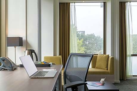 Leonardo Hotel Amsterdam Rembrandtpark offers modern and elegant rooms next to Rembrandtpark and the A10 ring road in Amsterdam. It includes a 17th-floor sky bar with scenic views over Amsterdam and free WiFi. Guests can make use of the shuttle bus service to Schiphol Airport. All of the air-conditioned rooms at Leonardo Hotel Amsterdam Rembrandtpark come with flat-screen TV, a seating area and tea/coffee making facilities. They also have a bathroom with a bath or shower. Guests can enjoy a refreshing work out in the spacious gym, relax in the sauna or top up their tan in the solarium. Guests can order a cocktail or other beverages while soaking up a 360-degree view over Amsterdam from the Floor17 Rooftop Terrace with its special Drink, Dine & Dance concept. Guests can also benefit from the 24-hour breakfast service. Schiphol Airport is 15 minutes' drive from Leonardo Hotel Amsterdam Rembrandtpark, and a shuttle is available on request. Admiraal Helfrichstraat tram stop, offering a direct tram connection to Dam Square in approximately 20 minutes, is 1148 feet away. There is an indoor car park available on site.