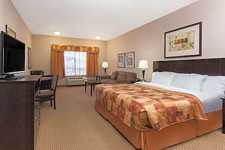 Ramada by Wyndham Brooks is offering accommodations in Brooks. With a fitness center, the 3-star hotel has air-conditioned rooms with free WiFi, each with a private bathroom. The hotel provides an indoor pool, hot tub and a shared lounge. At the hotel, every room has a desk. Some rooms will provide you with a kitchenette with a fridge and a microwave. All guest rooms in Ramada by Wyndham Brooks are equipped with a TV and free toiletries. The accommodation offers a buffet or continental breakfast. A business center and vending machines with snacks and drinks are available on site at Ramada by Wyndham Brooks. The hotel can conveniently provide information at the reception to help guests to get around the area. Medicine Hat Airport is 71 miles away.