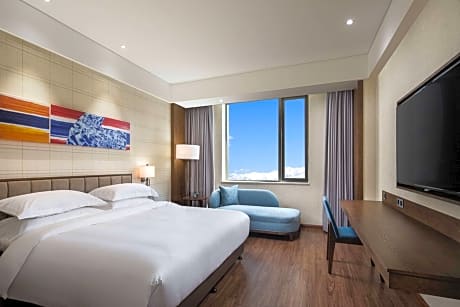 Refresh at Ramada by Wyndham Baoji Jintal with thoughtful amenities, comfortable guest rooms, and friendly service. Conveniently located in the downtown of Baoji Sandi Plaza in the Jintai district, our hotel is minutes from Baoji South Station, city government offices, and area businesses. Easily access local attractions like Zhonghua Shigu Park, Baoji Bronzeware Museum, and Yandi Temple. When you are not exploring the city, enjoy our two on site restaurants, fitness center, and free WiFi. We also offer ample event space for any kind of gathering.