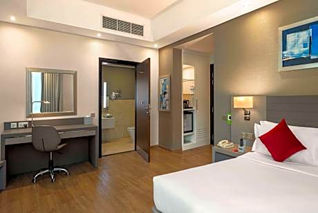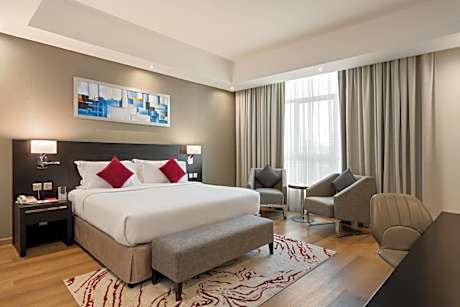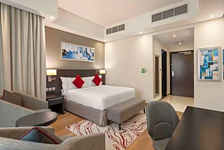 Experience an abundance of unparalleled facilities and features at Ramada by Wyndham Dubai Barsha Heights. Maintain seamless communication using the complimentary Wi-Fi at hotel.Effortlessly arrange transportation to and from the airport using the hotel's airport transfer services.Discovering Dubai becomes even more accessible through the taxi and car hire amenities provided at the hotel.For visitors traveling by automobile, complimentary parking is available.During your stay at this fantastic hotel, the attentive front desk personnel can provide you with a range of amenities such as concierge service, express check-in or check-out, luggage storage and safety deposit boxes.In search of city's top entertainment, seek assistance at the hotel's ticket service and tours for reservations. During chilly days and evenings, the hotel provides an in-house fireplace to ensure your warmth.At the hotel, utilize the on-site dry cleaning service and laundry service to maintain your beloved travel attire fresh, allowing you to bring fewer clothes. Craving relaxation? Make the most of your stay at the Ramada by Wyndham Dubai Barsha Heights with convenient amenities like 24-hour room service, room service and daily housekeeping at your disposal.For all your minor, last-minute requirements, the convenience stores can promptly cater to them, eliminating the need to venture out.Kindly note that smoking is prohibited in the hotel to ensure fresher air for all visitors. For visitors wishing to smoke, designated smoking zones can be found. At Ramada by Wyndham Dubai Barsha Heights, every guestroom is provided with convenient amenities and fittings to ensure a comfortable stay. Enhance your experience at hotel with the knowledge that certain rooms are equipped with linen service and air conditioning for your convenience.A few accommodations within Ramada by Wyndham Dubai Barsha Heights offer unique design elements such as a balcony or terrace. Certain rooms offer in-room amusement features such as the television for your enjoyment.In select rooms within the hotel, a refrigerator, a coffee or tea maker and mini bar is available to cater to your requirements when desired. It is worth noting that certain guest bathrooms feature a hair dryer, toiletries, bathrobes and towels for your convenience. Begin your day with a scrumptious on-site breakfast available each morning at Ramada by Wyndham Dubai Barsha Heights. Begin your day feeling refreshed and invigorated as you enjoy a delightful cup of quality coffee available at the cafe situated within the hotel. At the hotel, an assortment of easily accessible and delicious meal choices are available to satisfy your appetite whenever it strikes. At Ramada by Wyndham Dubai Barsha Heights, they are committed to catering to your unique requirements. They offer a variety of meal choices, encompassing halal alternatives for those with special dietary preferences.At Ramada by Wyndham Dubai Barsha Heights, visitors have the option to receive groceries directly in their accommodation, ensuring outstanding comfort and simplicity when it comes to meals. During your stay at hotel, an array of engaging activities and amenities guarantees a delightful experience. Conclude your holiday perfectly with a visit to massage, salon, solarium, steam room and spa on your final days.Be sure to drop by the pool at hotel at least once during your stay.At Ramada by Wyndham Dubai Barsha Heights, utmost care is taken to ensure guests' comfort. Relish your preferred beverage in your swimwear by the hotel's poolside bar. Discover the fitness amenities at hotel to maintain your health and strength during your getaway.