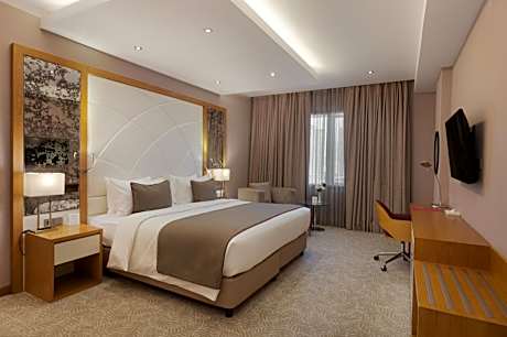Experience an abundance of unparalleled facilities and features at Ramada by Wyndham Erbil Gulan Street. Maintain seamless communication using the complimentary Wi-Fi at hotel. Effortlessly arrange transportation to and from the airport using the hotel's airport transfer services. Discovering Erbil becomes even more accessible through the taxi and car hire amenities provided at the hotel. For visitors traveling by automobile, complimentary parking is available. During your stay at this fantastic hotel, the attentive front desk personnel can provide you with a range of amenities such as concierge service and luggage storage. Obtaining passes for the town's top entertainments becomes effortless with hotel's ticket service. At the hotel, utilize the on-site dry cleaning service and laundry service to maintain your beloved travel attire fresh, allowing you to bring fewer clothes. Craving relaxation? Make the most of your stay at the Ramada by Wyndham Erbil Gulan Street with convenient amenities like 24-hour room service, room service and daily housekeeping at your disposal.For visitors wishing to smoke, designated smoking zones can be found.At Ramada by Wyndham Erbil Gulan Street, every guestroom is provided with convenient amenities and fittings to ensure a comfortable stay. Enhance your experience at hotel with the knowledge that certain rooms are equipped with linen service and air conditioning for your convenience.Certain rooms offer in-room amusement features such as the television for your enjoyment. In select rooms at the hotel, mini bar is available for those moments when it seems necessary.It is worth noting that certain guest bathrooms feature a hair dryer, toiletries and bathrobes for your convenience. Begin your day with a scrumptious on-site breakfast available each morning at Ramada by Wyndham Erbil Gulan Street.Begin your day feeling refreshed and invigorated as you enjoy a delightful cup of quality coffee available at the cafe situated within the hotel.At the hotel, an assortment of easily accessible and delicious meal choices are available to satisfy your appetite whenever it strikes.At Ramada by Wyndham Erbil Gulan Street, they are committed to catering to your unique requirements. They offer a variety of meal choices, encompassing halal alternatives for those with special dietary preferences. Enjoy an entertaining evening with your fellow travelers at the hotel's bar. During your stay at hotel, an array of engaging activities and amenities guarantees a delightful experience. Conclude your holiday perfectly with a visit to massage, salon, steam room, spa and sauna on your final days. Be sure to drop by the pool at hotel at least once during your stay.At Ramada by Wyndham Erbil Gulan Street, utmost care is taken to ensure guests' comfort. Relish your preferred beverage in your swimwear by the hotel's poolside bar.Discover the fitness amenities at hotel to maintain your health and strength during your getaway.