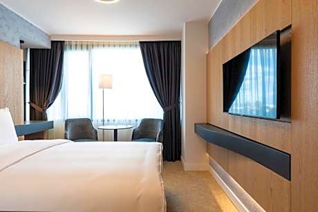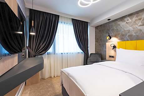 Ramada by Wyndham Slatina Parc has a shared lounge, terrace, a restaurant and bar in Slatina. This 4-star hotel offers a business center and a concierge service. The property has a 24-hour front desk, airport transportation, room service and free WiFi throughout the property. The hotel will provide guests with air-conditioned rooms offering a desk, an electric tea pot, a minibar, a safety deposit box, a flat-screen TV and a private bathroom with a shower. All rooms feature a closet. A buffet, continental or American breakfast is available at the property. Guests can relax in the spa and wellness center, including a fitness center, a sauna and a hot tub, or in the garden. Craiova International Airport is 27 miles from the property.