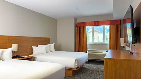 Located in the heart of Canmore, Canmore Inn & Suites features a three-story water slide, indoor pool and rooms with mountain views and cable TV. Canmore Golf & Curling Club is only a 20 minute walk away. Free WiFi is provided. All guest rooms at Canmore Inn & Suites provide a microwave, coffee maker, and refrigerator. They are furnished with a seating area, work desk, and safety deposit box. The private bathroom includes free toiletries and a hairdryer. The hotel also offers guests a hot tub and gym, as well as ski storage and conference meeting facilities. Silver Tip Golf Resort is 2.2 mi from the hotel. The hotel is a 15-minute drive from Banff National Park.