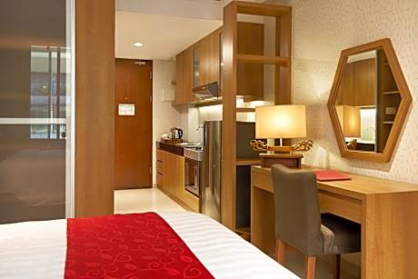 At Ramada Encore by Wyndham Seminyak Bali, exceptional service and top-notch amenities create a memorable experience for guests. Complimentary internet access is available in the hotel to ensure you stay connected during your visit. Arrange your trips to and from the airport using the hotel's convenient transportation services booking. Discover the wonders of Bali with ease by utilizing the services provided by taxi and car hire. Complimentary parking is available for guests. Continuously receive the support you require through front desk amenities such as luggage storage and safety deposit boxes.At the hotel, their tours can even assist you in booking tickets and securing reservations for leisure activities and adventures.Always look your best in your preferred attire with the dry cleaning service and laundry service provided at Ramada Encore by Wyndham Seminyak Bali.Desire to unwind? Make the most of your visit at Ramada Encore by Wyndham Seminyak Bali with accessible amenities such as room service.For the health and well-being of all guests and staff, smoking is restricted exclusively to assigned zones.Accommodations come equipped with all the conveniences required for a restful night's slumber. A selection of rooms feature linen service and air conditioning to ensure your comfort and convenience. A few accommodations in Ramada Encore by Wyndham Seminyak Bali incorporate separate living room and balcony or terrace into their architectural arrangement. A few chosen rooms are equipped with television and cable TV to ensure guest amusement.In certain rooms, the hotel offers visitors access to a refrigerator, bottled water, a coffee or tea maker, instant coffee, instant tea and mini bar.In the hotel, certain guest bathrooms come equipped with essential bathroom amenities, such as a hair dryer and toiletries, ensuring a comfortable stay for guests. A delightful breakfast is the perfect way to begin your day, and at Ramada Encore by Wyndham Seminyak Bali, you can always indulge in a scrumptious meal on-site. All adore a delightful cup of coffee! An on-site coffee shop ensures you can relish a cup of authentic, freshly-brewed coffee every morning -- or whenever you desire it. Allow your journey to be free from the pangs of hunger! On-site eateries offer delicious and accessible meal choices.An evening spent at hotel's bar can offer as much enjoyment as venturing out with your fellow travelers.At Ramada Encore by Wyndham Seminyak Bali, guests can take pleasure in the delightful recreational amenities provided for their entertainment.Conclude your days in complete tranquility by paying a visit to massage, spa and sauna for ultimate relaxation.At Ramada Encore by Wyndham Seminyak Bali, a wide array of amenities guarantees a fulfilling experience throughout your visit. Make your holiday truly memorable by taking a rejuvenating plunge into the pool.At Ramada Encore by Wyndham Seminyak Bali, the poolside bar provides an excellent incentive to enjoy extended hours in your swimwear.At the hotel fitness center, you have the option to engage in your daily exercise routine or simply alleviate your jet lag by breaking a sweat.