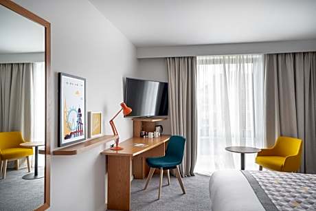 The Holiday Inn Bournemouth is a modern hotel that is centrally located 10-minutes walk from Bournemouth Beach and town center. The property provides on-site parking and free high speed WiFi. An on-site restaurant with bar, gym and an outdoor seating terrace is also featured. Electric car charging points available All rooms come with air-conditioning, Hypnos beds, pillow menu, hairdryer and walk-in shower. Other amenities include a 43-inch Smart TV, USB charging points, work desk, safe, iron and tea,coffee making facilities. The property also serve Starbucks coffee and offer meeting rooms to book for business travelers. Guests can also purchase accessories and snack-to-go at the hotel. Pavillion Theater is 2625 feet away, while Bournemouth railway is 0.6 mi and Bournemouth International Center is 0.7 mi from the property. Bournemouth International Airport is 5.6 mi from the property.