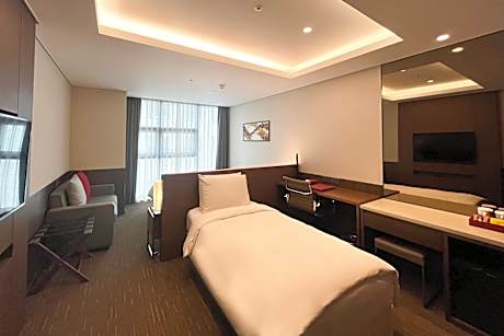 Ramada Encore by Wyndham Busan Station provides flawless service and all the necessary facilities for visitors.Stay connected with your associates, as complimentary Wi-Fi is available during your entire visit. The hotel offers taxi amenities to assist you in discovering your desired offerings in Busan. When arriving by car, you'll be grateful for the on-site complimentary parking at hotel. The hotel offers reception amenities including concierge service, express check-in or check-out, luggage storage and safety deposit boxes to ensure a comfortable stay for guests.Should you require it, the tours can even assist you in booking tickets and securing reservations for the finest shows and events in the vicinity.Whether it's an extended stay or simply needing fresh attire, dry cleaning service and laundry service provided by hotel ensures your cherished travel garments stay spotless and accessible. The hotel's daily housekeeping ensures an excellent option for your stay.Need something at the last minute? The convenience stores has you covered, ensuring your requirements are met without any inconvenience. To ensure the well-being and convenience of all visitors, smoking is strictly prohibited throughout the entire hotel. In order to ensure the utmost level of relaxation, the guestrooms feature an inviting design and are equipped with all basic necessities, creating a delightful stay experience. To ensure a pleasant stay, a selection of rooms at hotel come furnished with blackout curtains and air conditioning, all designed with your ease in mind. Selected rooms offer in-room amusement like cable TV as a source of entertainment for guests to enjoy. Within specific rooms, a refrigerator, a coffee or tea maker, bottled water, instant coffee, instant tea and mini bar is conveniently available for your use.Understanding the significance of bathroom facilities in enhancing visitor contentment, hotel offers a hair dryer, bathrobes and towels within a few chosen chambers. Start your day stress-free at Ramada Encore by Wyndham Busan Station as breakfast is made available for you on the premises.How about kicking off each day of your getaway with a delicious cup of coffee? At the hotel, relish in the invigorating taste of a freshly brewed, excellent coffee.Various excellent meal offerings at hotel ensure that enticing and easily accessible options are constantly available. Throughout the day, engage in the entertaining activities available at Ramada Encore by Wyndham Busan Station.Guests who enjoy maintaining their fitness regimen while on holiday can visit the fitness center provided by hotel.