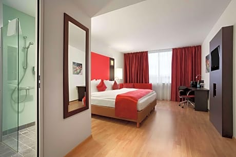 Located between the Stade de Genève and the La Praille shopping center, the Hotel Ramada Encore Geneve offers easy access to the center of Geneva and to Geneva Airport. The hotel is located only 15 minutes from both Geneva International Airport and Geneva-Cornavin, the main train station. Bus Line D brings you directly from the hotel to the city center within a few minutes. All rooms in the Ramada Encore Geneve La Praille are soundproofed. They come with extra long beds, a business desk, fax/PC connections, 2 phone lines and an LCD TV with video on demand. There is a restaurant and a coffee-lounge in the hotel. An additional choice of 8 restaurants is available in the shopping mall "La Praille". At the shopping mall you can also find a fitness center, swimming pool and spa center. At the reception, guests can find a Europcar car rental station.