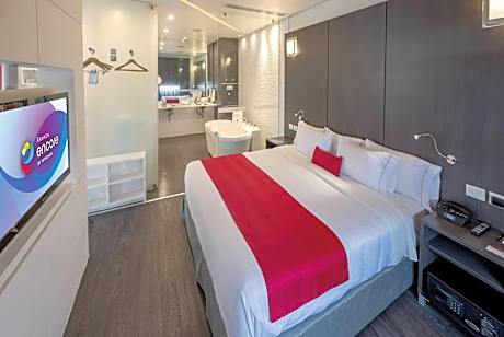 This modern hotel is located in Guadalajara’s commercial San José del Tajo district, just 5 minutes’ walk from Flextronics Business Park. It offers a gym and modern rooms with free Wi-Fi. The stylish rooms at Ramada Encore by Wyndham Guadalajara Sur feature a work desk and a flat-screen TV. Each one comes with a coffee maker, alarm clock and private bathroom with hairdryer. The hotel serves a daily buffet breakfast at the restaurant. There are many restaurants, bars and shopping centers within 656 feet of the hotel. There are many business parks in the streets surrounding Ramada Encore by Wyndham Guadalajara Sur, and Expo Guadalajara Convention Center is 15 minutes’ drive away. You can drive to Guadalajara City Center in around 15 minutes.