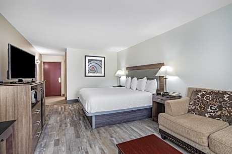 Located off Highway 26 Exit 49-A, the Hendersonville Ramada is 30 minutes’ drive from Hickory Nut Gorge State Park. Ramada Hendersonville guests will enjoy a daily hot breakfast and free Wi-Fi. A 40"flat screen TV and tea and coffee-making facilities are included in every standard guest room. All rooms are decorated in warm colors and with wood furnishings and accents. A snack bar and meeting room are available on site at Ramada Hendersonville. Nonsmoking rooms are available and guests will also enjoy the added convenience of a 24-hour reception. The hotel is 7 minutes' drive from historic Hendersonville city center and 20 minutes' drive from Asheville Airport. Chimney Rock is 25 minutes' drive from the property.