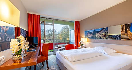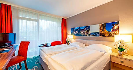 Located just a 20-minute walk from the historic center of Goslar, PLAZA INN Goslar enjoys a peaceful location on the northern edge of the Harz Mountains. The hotel is an ideal base for exploring Goslar's UNESCO World Heritage Sites or cycling the scenic trails of the Volksbank Arena Harz. The PLAZA INN Goslar features a restaurant with a terrace a cozy bar, private parking, and a tranquil inner courtyard. Wi-Fi is available free of charge throughout the property. The indoor pool and sauna (currently not usable) are also part of the amenities. All rooms at PLAZA INN Goslar are equipped with twin beds, a desk, a seating area, and an private bathroom with a hairdryer. Spacious family rooms accommodate up to six guests, making it a great choice for families. The hotel is also dog-friendly. PLAZA INN Goslar offers flexible conference facilities for up to 350 people, combining business convenience with a relaxing stay in the Harz region.