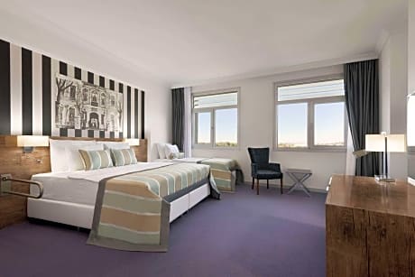 Ramada Hotel & Suites by Wyndham Edirne offers top-notch services and amenities, ensuring guests experience utmost comfort. Share your photos and respond to emails at your convenience, thanks to the free Wi-Fi internet access offered by hotel. Services offered by car hire and shuttle at the hotel ensure effortless exploration of Edirne.Visitors can take advantage of complimentary parking directly at the hotel.Reception services such as concierge service, express check-in or check-out and luggage storage are available to accommodate your requirements.Traveling with minimal baggage is achievable at Ramada Hotel & Suites by Wyndham Edirne, as the hotel's laundromat, dry cleaning service and laundry service ensures your garments stay fresh.Room amenities like 24-hour room service, room service and daily housekeeping contribute to making a perfect selection for your stay. The hotel maintains a completely smoke-free zone, providing a breathable atmosphere.Smoking is limited to specified smoking zones. Each accommodation at Ramada Hotel & Suites by Wyndham Edirne is thoughtfully created and adorned to provide visitors with a comfortable, home-like atmosphere. In select rooms of the hotel, guests can enjoy the advantage of having air conditioning available for their convenience.In select rooms, guests can enjoy a touch of amusement with the availability of television for their entertainment.Ramada Hotel & Suites by Wyndham Edirne offers a hair dryer and toiletries in the restrooms of specific accommodations. Immerse yourself in the executive lounge, where exceptional amenities and lavish surroundings await you. Embark on your holiday experience in the most ideal manner. Commence each morning of your visit with an on-site breakfast. Experience the delight of a fresh morning by savoring excellent coffee at the cafe situated within hotel.Should you prefer not to venture out for a meal, the enticing culinary choices at hotel are always available for your satisfaction. No matter your specific dietary needs, rest assured that Ramada Hotel & Suites by Wyndham Edirne provides an array of kosher choices to ensure your dining experience is nothing short of delightful. Experience an amazing evening effortlessly! Have an enjoyable night without venturing beyond the premises at bar and nightclub. Ramada Hotel & Suites by Wyndham Edirne provides a superb assortment of leisure amenities for guests to enjoy. Unwind after your day by exploring the massage and find warmth and relaxation. For individuals who don't want to skip their exercise routine, visiting the hotel fitness center ensures you maintain your vitality and wellness.
