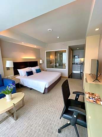 Experience an abundance of unparalleled facilities and features at Sora Resort & Suites Sukhumvit. Maintain seamless communication using the complimentary Wi-Fi at hotel.Effortlessly arrange transportation to and from the airport using the hotel's airport transfer services.Discovering Bangkok becomes even more accessible, thanks to the shuttle amenities provided at the hotel.For visitors traveling by automobile, complimentary parking is available. During your stay at this fantastic hotel, the attentive front desk personnel can provide you with a range of amenities such as luggage storage and safety deposit boxes.At the hotel, utilize the on-site dry cleaning service and laundry service to maintain your beloved travel attire fresh, allowing you to bring fewer clothes.During leisurely days and evenings, on-site amenities such as daily housekeeping enable you to fully enjoy your accommodation.Kindly note that smoking is prohibited in the hotel to ensure fresher air for all visitors.For visitors wishing to smoke, designated smoking zones can be found.At Sora Resort & Suites Sukhumvit, every guestroom is provided with convenient amenities and fittings to ensure a comfortable stay.Enhance your experience at hotel with the knowledge that certain rooms are equipped with linen service, blackout curtains and air conditioning for your convenience. A few accommodations within Sora Resort & Suites Sukhumvit offer unique design elements such as a separate living room. Certain rooms boast in-room amusement features such as television and cable TV, offering guests an enjoyable stay. In select rooms within the hotel, a refrigerator, bottled water, instant coffee, instant tea and mini bar is available to cater to your requirements when desired. It is worth noting that certain guest bathrooms feature a hair dryer, toiletries and bathrobes for your convenience. Begin your day with a scrumptious on-site breakfast available each morning at Sora Resort & Suites Sukhumvit. Begin your day feeling refreshed and invigorated as you enjoy a delightful cup of quality coffee available at the cafe situated within the hotel. At the hotel, an assortment of easily accessible and delicious meal choices are available to satisfy your appetite whenever it strikes.During your stay at hotel, an array of engaging activities and amenities guarantees a delightful experience.Be sure to drop by the pool at hotel at least once during your stay. At Sora Resort & Suites Sukhumvit, utmost care is taken to ensure guests' comfort. Relish your preferred beverage in your swimwear by the hotel's poolside bar.Discover the fitness amenities at hotel to maintain your health and strength during your getaway.