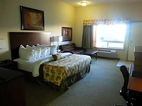 Located in Olds, Ramada by Wyndham Olds offers barbecue facilities. Among the facilities at this property are a 24-hour front desk and a business center, along with free WiFi throughout the property. Guests can enjoy a water park, a snacks and a shared lounge. All rooms in the hotel are equipped with a flat-screen TV with satellite channels. All guest rooms at Ramada by Wyndham Olds feature air conditioning and a desk. The accommodation offers a buffet or continental breakfast. Ramada by Wyndham Olds offers 3-star accommodations with an indoor pool, fitness center and sauna. Calgary International Airport is 50 miles away.