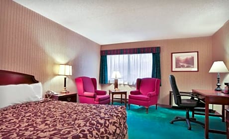 Located 5 miles from the Hagerstown Premium Outlet Mall, this hotel features an on-site restaurant. The city center of Hagerstown, Maryland is an 11-minute drive. The Ramada Plaza Hotel in Hagerstown has rooms equipped with a cable TV with HBO channels, seating area, and refrigerator. A coffee maker and a work desk are also in every red and cream colored room. The Fireside Restaurant and Lounge serves American cuisine and offers a room service option. A hot continental breakfast is served every morning. The Hagerstown Ramada Plaza Hotel has an on-site fitness center, business center, and meeting facilities. The hotel also provides an airport shuttle to Hagerstown Regional Airport. Whitetail Ski Resort is 17.5 miles away from the hotel. Antietam National Battlefield is 19 miles away.
