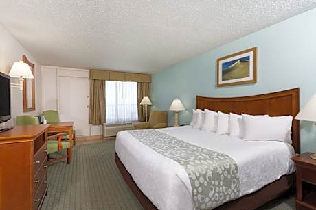 Accommodations at Ramada Plaza by Wyndham Nags Head Oceanfront are thoughtfully equipped with modern comforts and conveniences. Each room offers a cable TV, microwave, and small refrigerator, ensuring a comfortable stay. Select rooms elevate the experience with patios or private balconies, offering breathtaking views of the ocean, beach dunes, or picturesque streets.