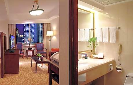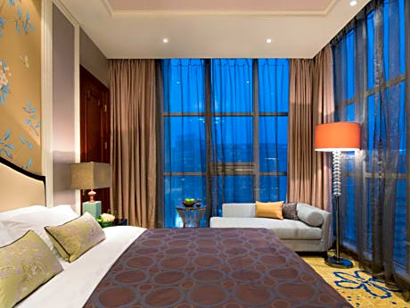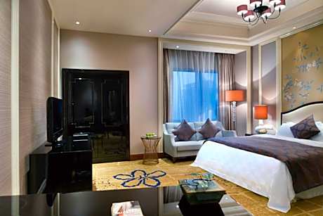 Only a 10-minute stroll from Wuhan International Exhibition Center, Ramada Plaza Tianlu Hotel offers luxurious accommodations in Wuhan downtown. It features an indoor pool, a fitness center and free Wi-Fi access. The hotel is a 16-minute drive from Yellow Crane Towel, and a 27-minute drive from East Lake Scenic Area. It is a 10-minute drive from Wuhan Hankou Railway Station, a 17-minute drive from Wuhan Wuchang Railway Station, and a 35-minute drive from Wuhan Railway Station. Tianhe International Airport is about a 28-minute drive away. Offering city views, all rooms here are soundproofing and air conditioned. They will provide a flat-screen TV with cable and satellite channels, seating area, mini-bar and fridge. Featuring a bathtub and shower facilities, private bathroom includes a hairdryer and soft bathrobes. There is a 24-hour front desk at Hotel Ramada Plaza Tianlu. Car hire, currency exchange and luggage storage are provided. Guests can enjoy soothing massage and sauna, or play tennis at the hotel. Other facilities include a cash machine, a shop and a business center. A selection of local dishes, western food and buffet can be served at the on-site restaurant.