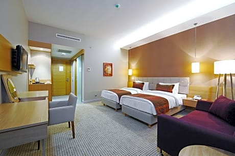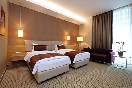 Connected with the popular Mall of Montenegro in the very heart of the capital, the stylish interiors of Ramada Podgorica include a spa area and an elegant top-floor restaurant with panoramic views. Free Wi-Fi and LCD satellite TV are standard in each of its modern-style rooms and suites. The spacious and luxurious accommodations units at Ramada Podgorica all have individually controlled air conditioning and a mini-bar. The private bathroom comes with bathrobes and slippers. With its floor-to-ceiling windows and a terrace offering far-reaching views of Podgorica, the hotel restaurant serves a variety of international specialties. Sauna, steam bath and sun beds can be used in the spa, as well as massage treatments and a gym. The lush Morača riverside is a 15-minute walk away from the hotel, same as the historic Stara Varoš District and the Gorica Promenade. Ramada Podgorica is just a 15-minute drive from the city's international airport. The Adriatic Sea can be reached in 45 minutes via Sozina Tunnel, while Kolašin Ski Resort is within a 1-hour drive.