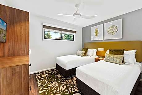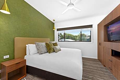 Club Wyndham Flynns Beach, Trademark Collection by Wyndham in Port Macquarie provides accommodations with a garden, a bar, and barbecue facilities. With an outdoor swimming pool, the 4-star condo hotel has air-conditioned rooms with free Wifi, each with a private bathroom. The wellness area includes a sauna, a hot tub, a steam room, and a fitness center. Some units also have a well-equipped kitchen with a dishwasher, an oven, and a toaster. At the condo hotel, all units include a TV with cable channels. Guests at the condo hotel can enjoy an à la carte breakfast. Guests can eat at the on-site family-friendly restaurant, which is open for dinner, lunch, brunch, and cocktails. You can play table tennis at Club Wyndham Flynns Beach, Trademark Collection by Wyndham, and bike rental is available. Kids pool is also available at the accommodation, while guests can also relax on the sun terrace. Flynns Beach is a 3-minute walk from Club Wyndham Flynns Beach, Trademark Collection by Wyndham, while Port Macquarie Marina is 2.8 miles away. Port Macquarie Airport is 3.7 miles from the property.